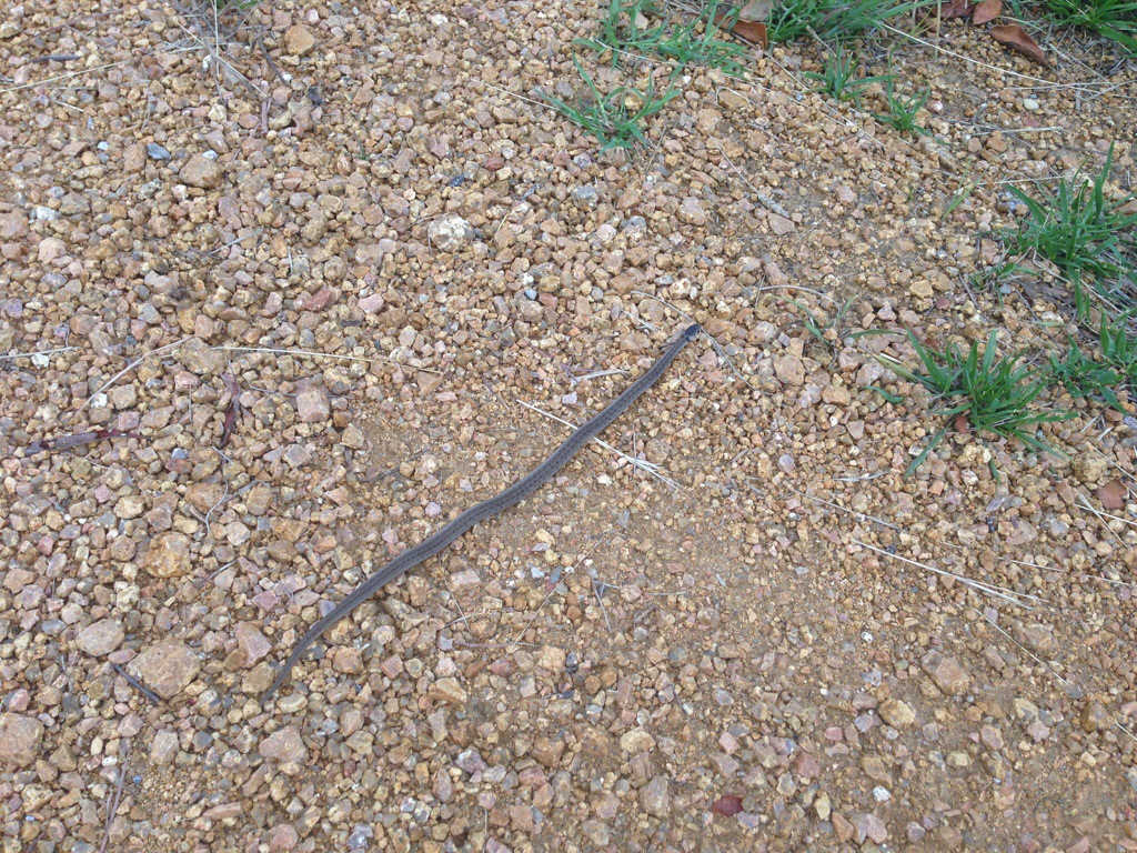 As I walked along, just past the driving range, I saw what looked like a really straight stick. Until I realized most sticks don’t have heads and tails. I gently touched him and discovered that yes….I had come across a baby Texas Rat Snake! I take this as a good sign since according to the Chinese I was born in the year of the Snake.