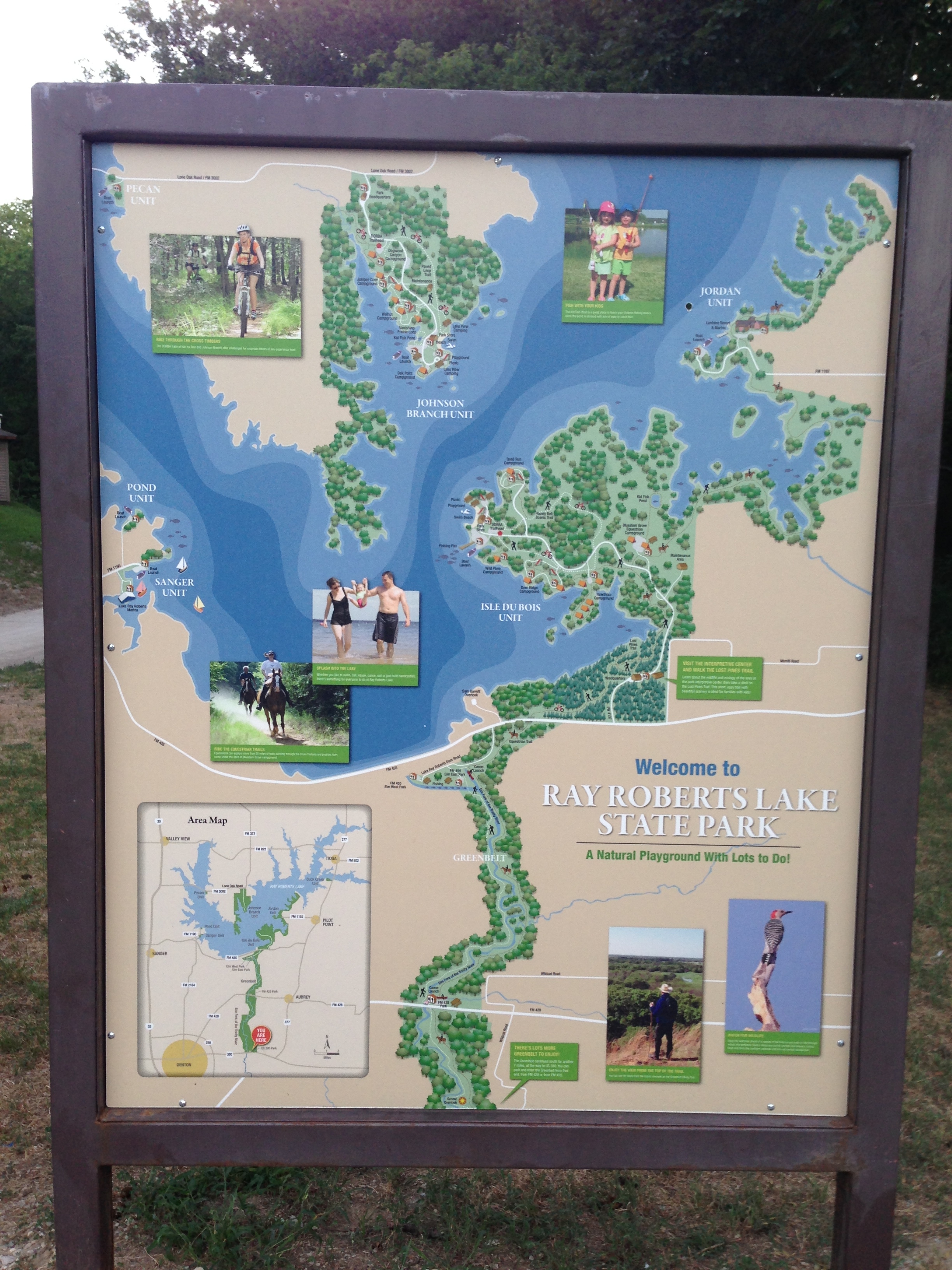 Probably one of the best site’s I have found that runs through all the different points on the trail is the one at Trail Map of Greenbelt Corridor in Ray Roberts Lake State Park.